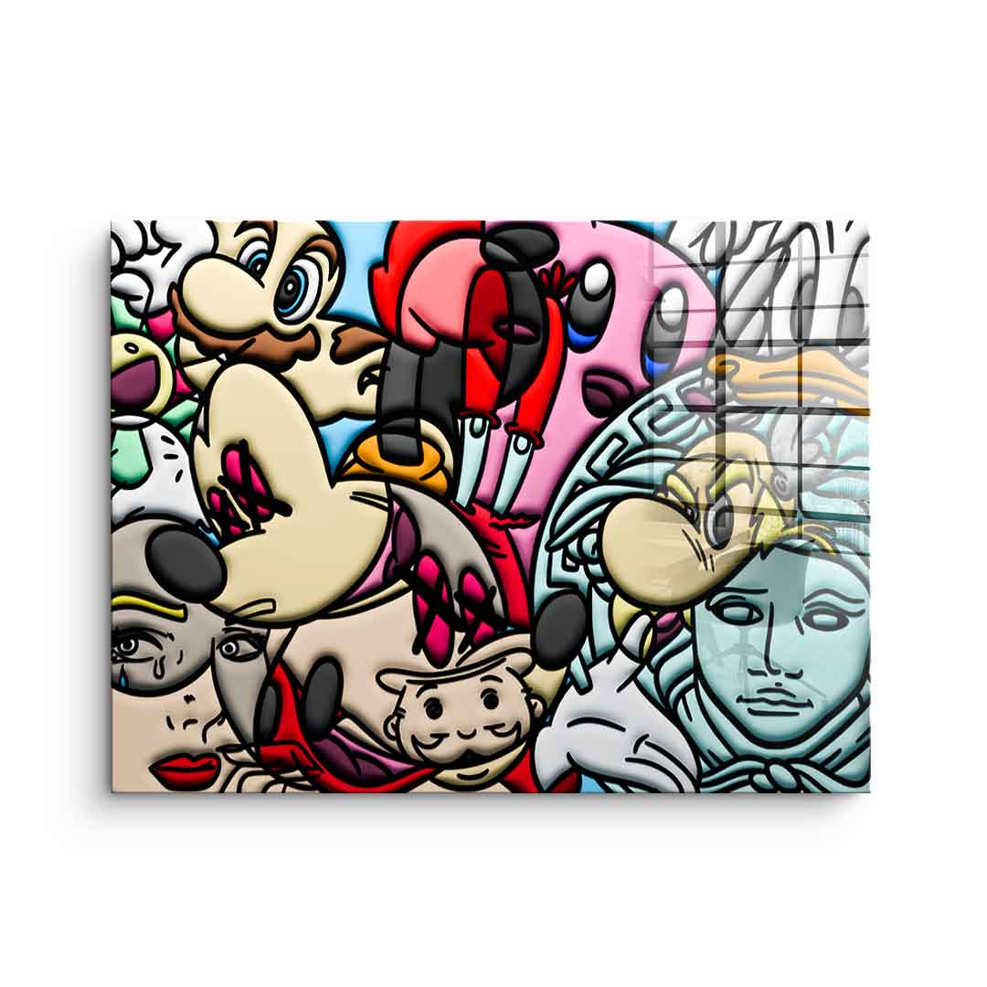 DOTCOMCANVAS® Premium Acrylic Glass Picture with a Collage of Various Comic Characters Motive .
