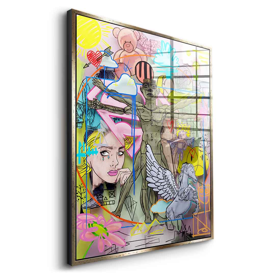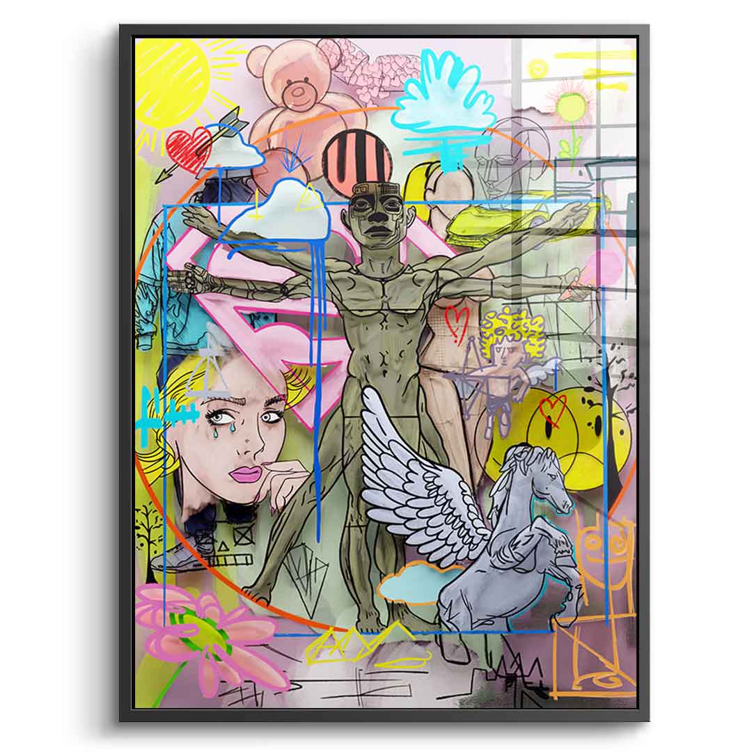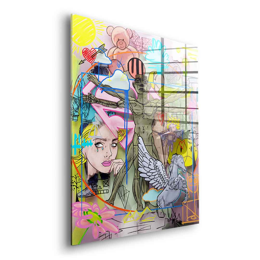 DOTCOMCANVAS® Premium Acrylic Glass Print with Collage Motif.