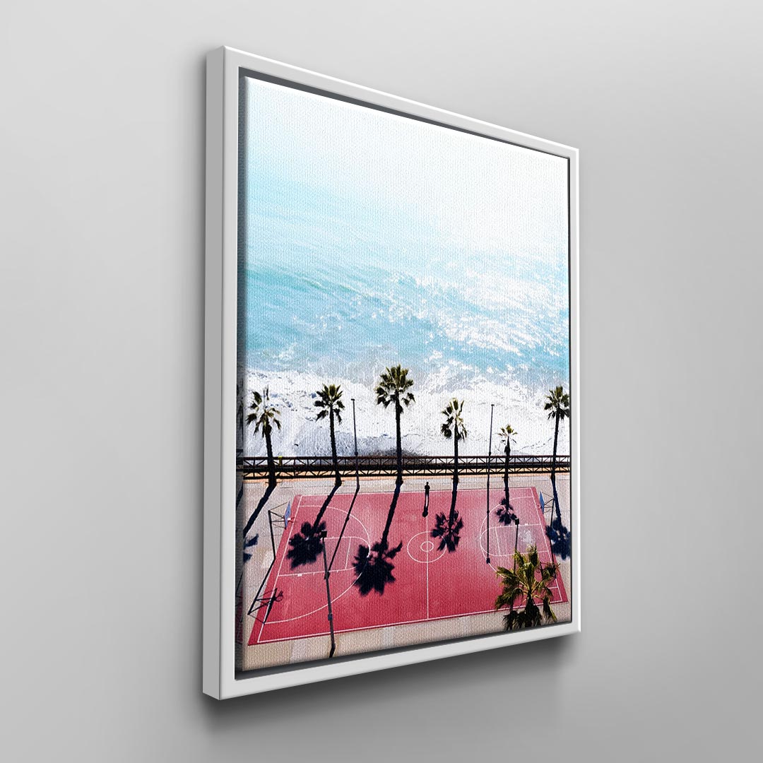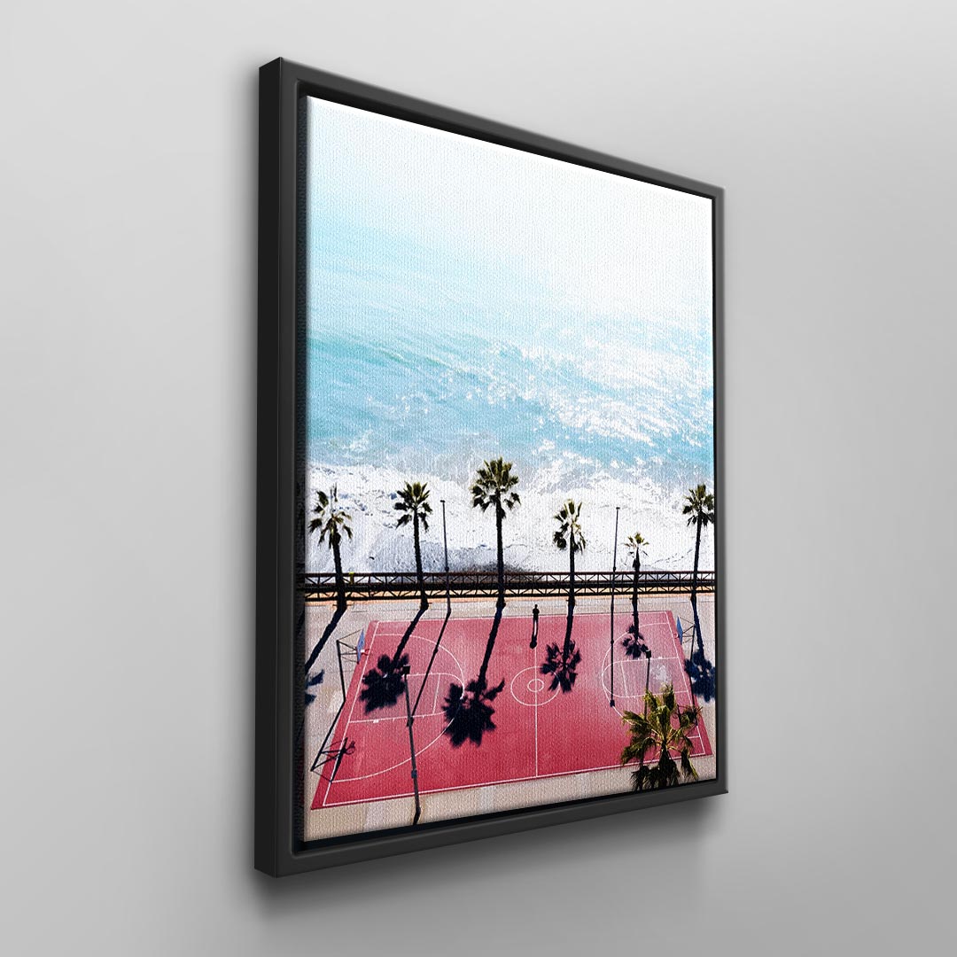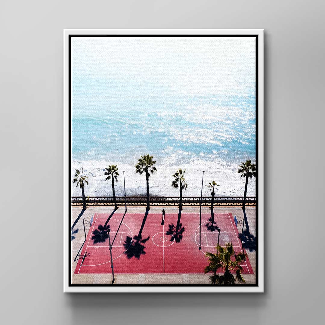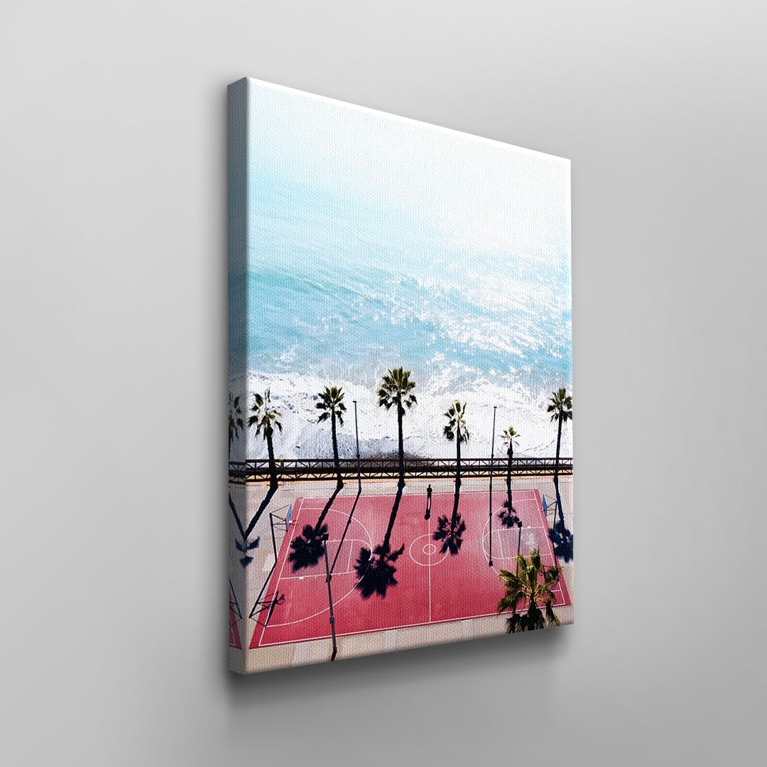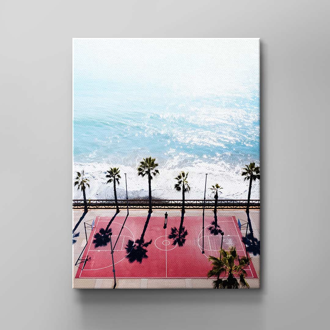 What does your perfect vacation look like? The people around you and the temperature probably play a big role. But for many people, it's also crucial that they don't neglect their sporting activities. When a great opportunity to exercise is combined with a breathtaking view, the vacation is perfect. Our modern "Basketball Court" wall art depicts just such a vacation spot. The canvas design, created by a talented artist, shows you what it looks like when sport and vacation come together. Use it as wall decor for your office or home, and of course, it comes with our DotComCanvas guarantee!