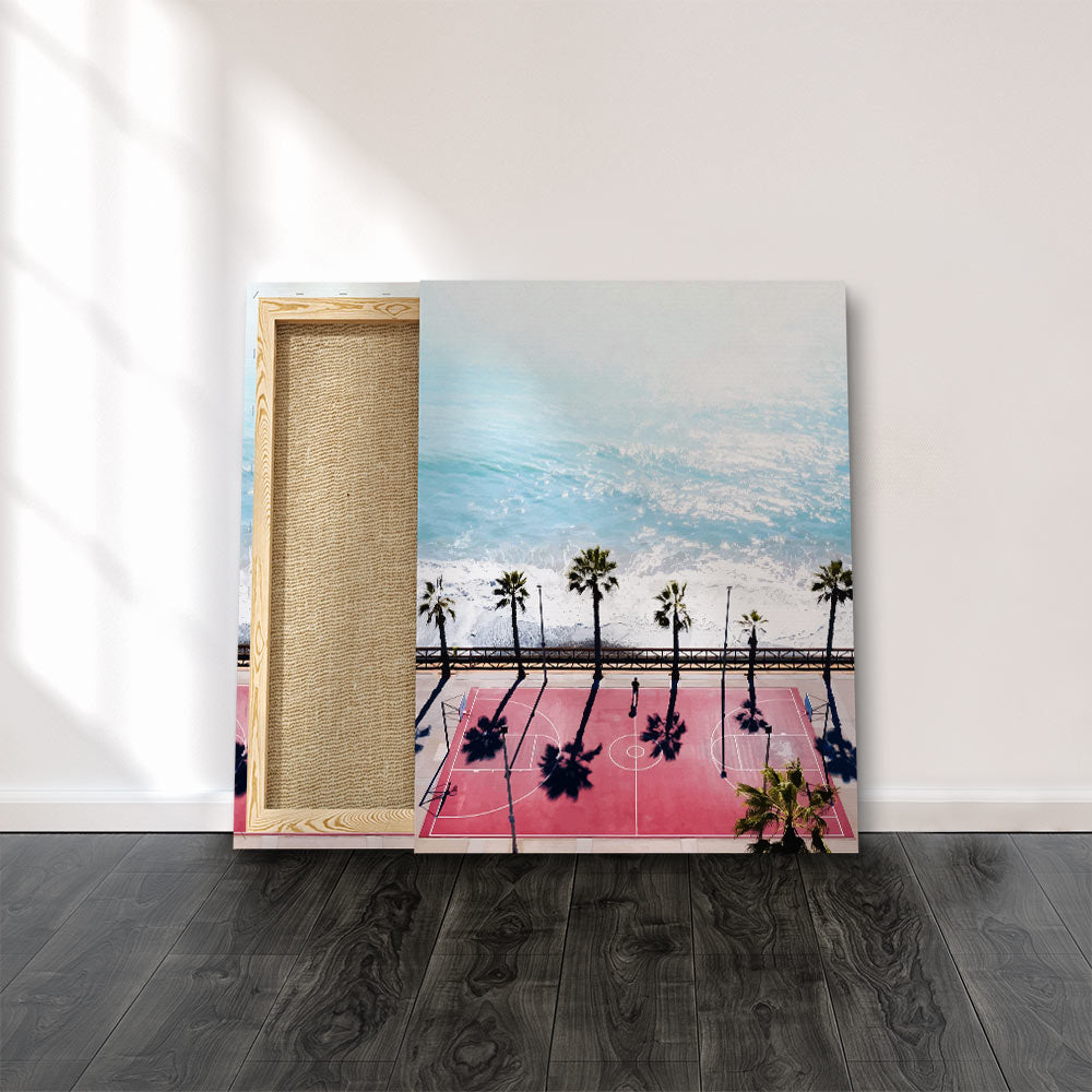 DOTCOMCANVAS® Wall Art Nature Basketball Court Sea Tree Blue Pink White Basketball Court