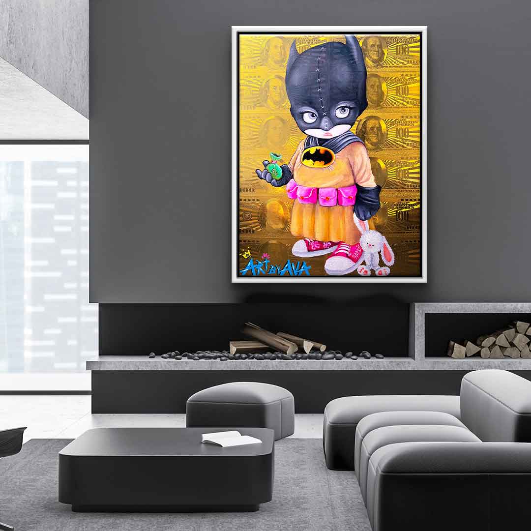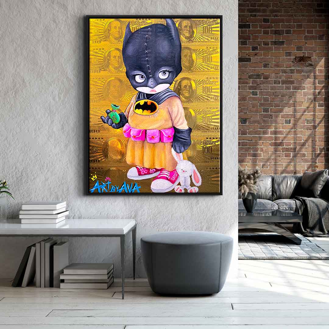 DOTCOMCANVAS® Premium Canvas Print with Child in Night Fighter Costume in Comic / Cartoon Style .