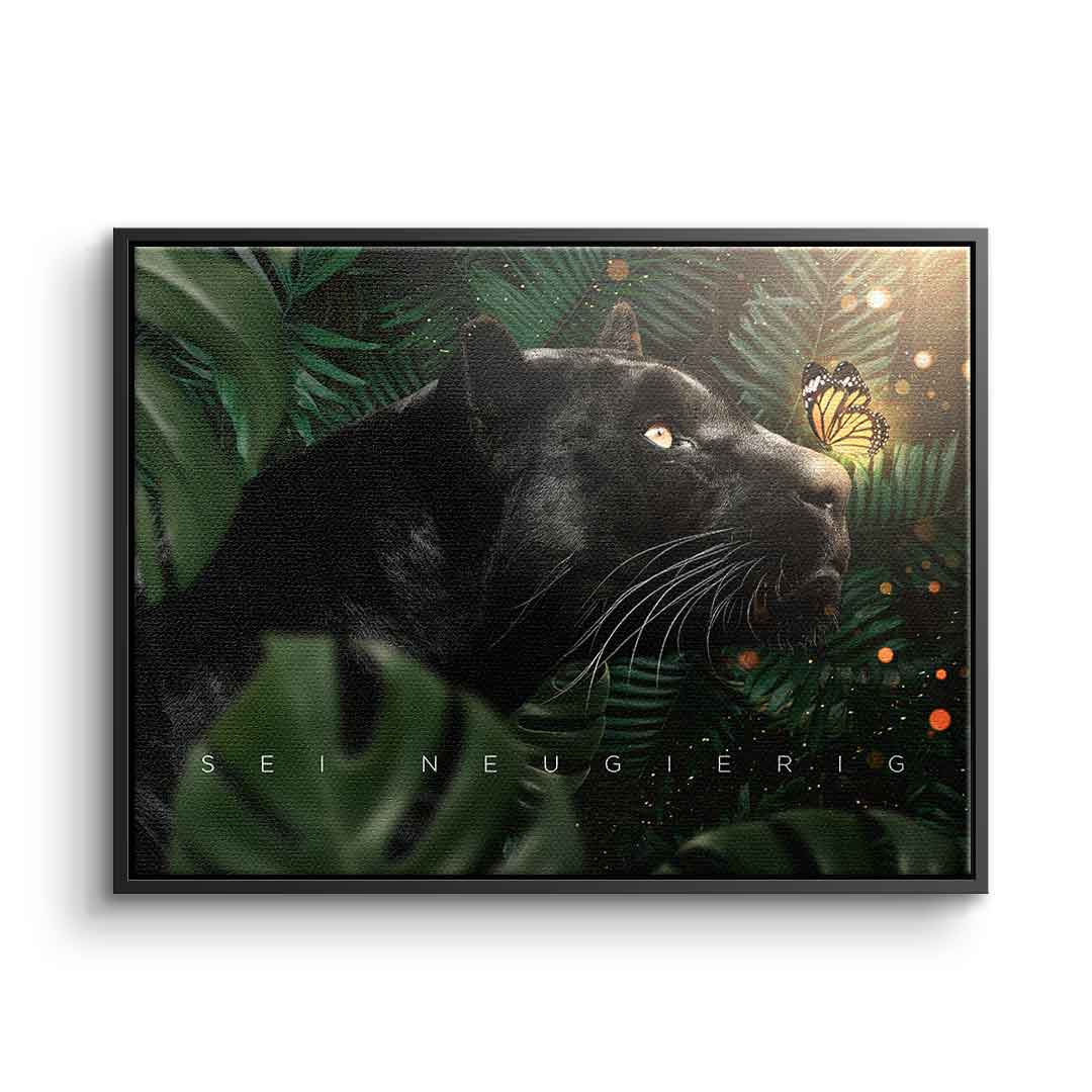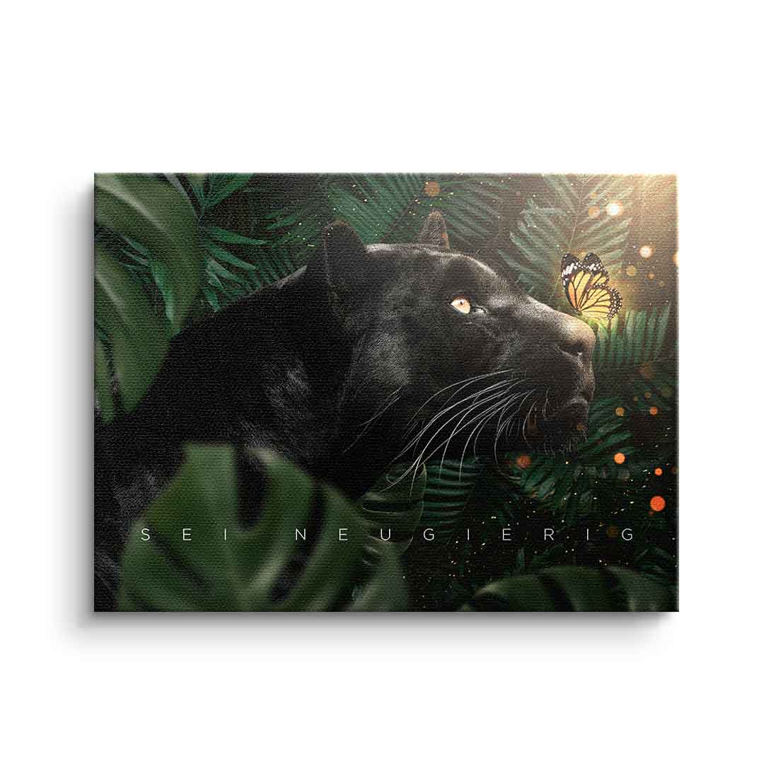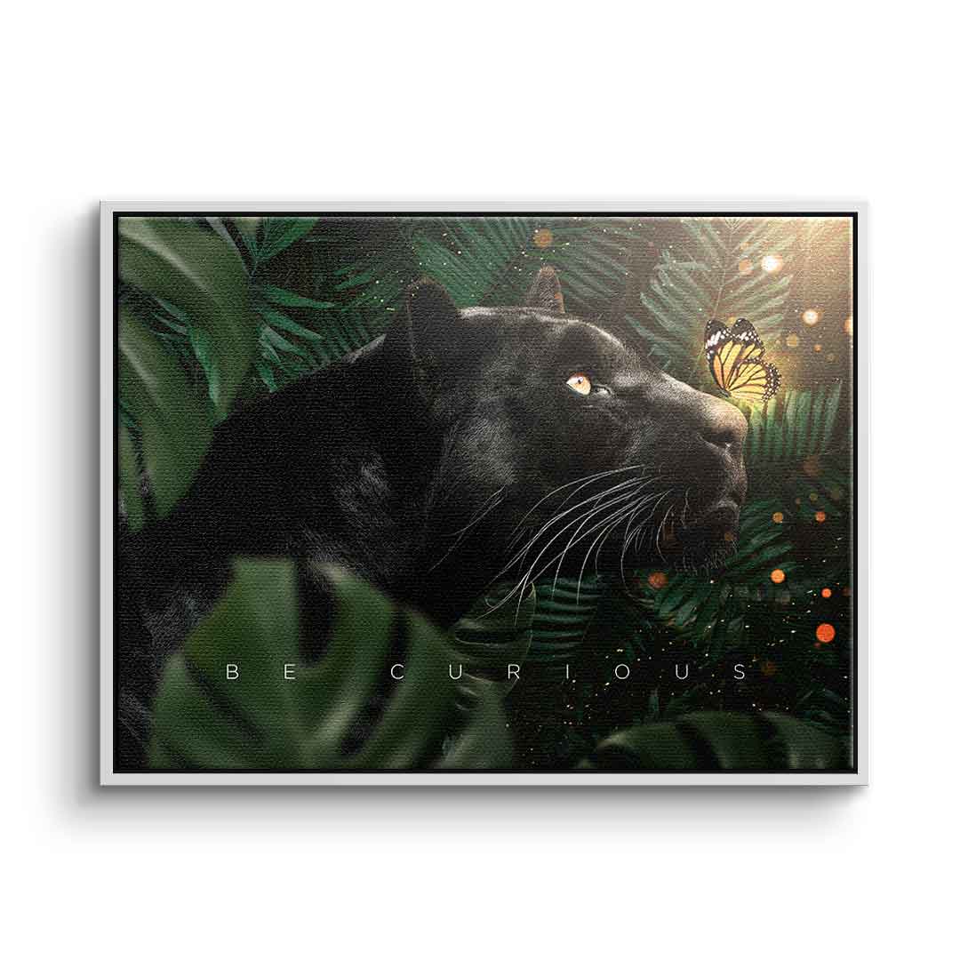 DOTCOMCANVAS® Wall Art Motivation Animal Black Panther Butterfly Jungle Green Orange White BE CURIOUS