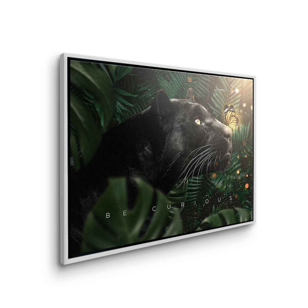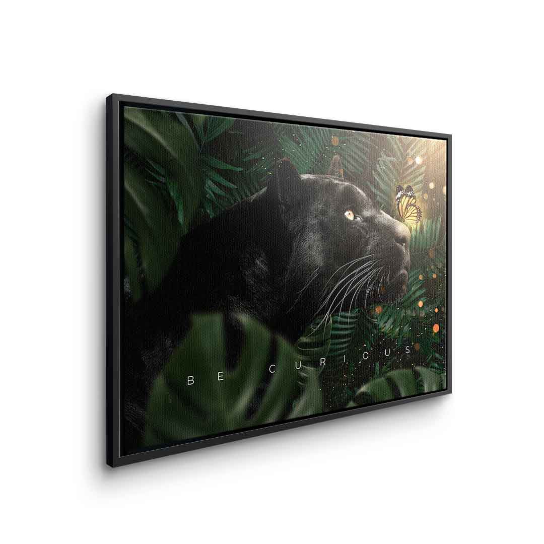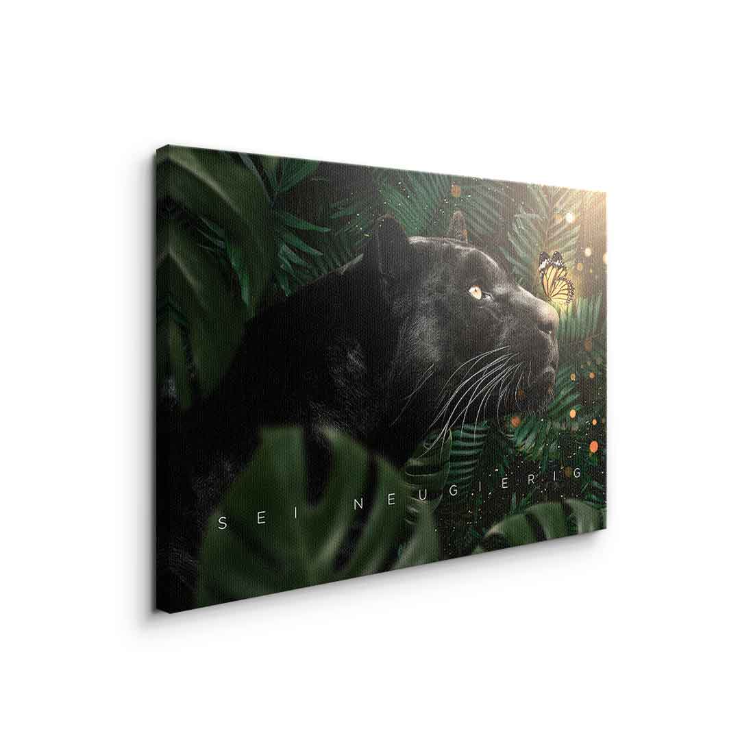 DOTCOMCANVAS® Wall Art Motivation Animal Black Panther Butterfly Jungle Green Orange White BE CURIOUS