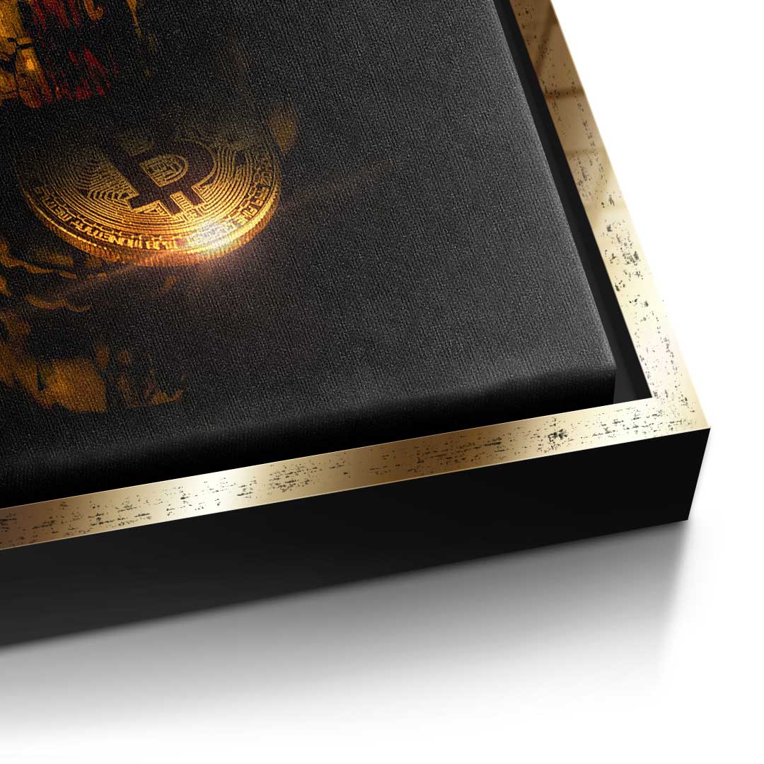 DOTCOMCANVAS® Premium Canvas Print with Bitcoin Skull Motif.