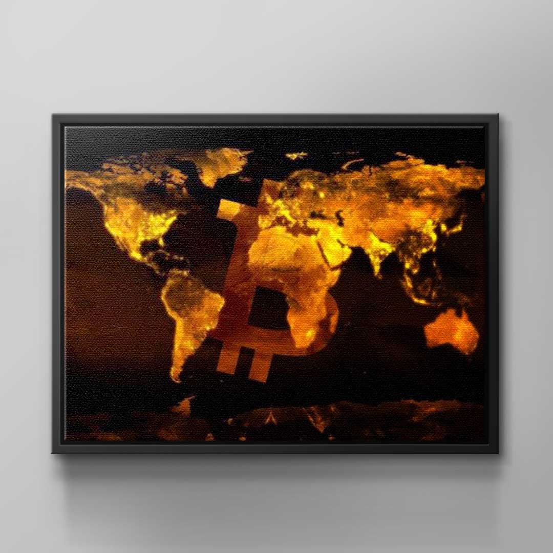 DOTCOMCANVAS® Wall Art Motivation Bitcoin World Map Black Brown Orange Gold Bitcoin World
