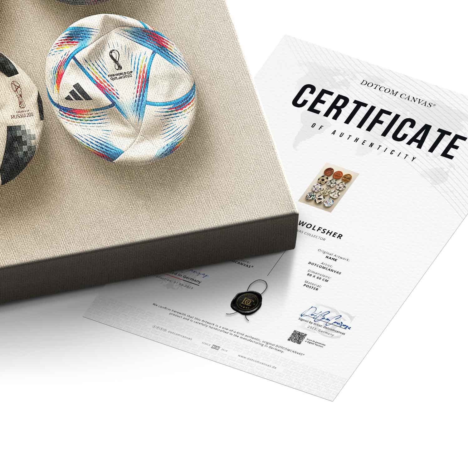 DOTCOMCANVAS® Premium Canvas Print with Flat World Cup Ball Collection Motif.