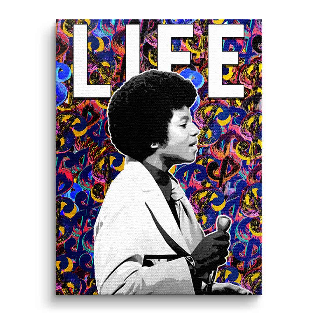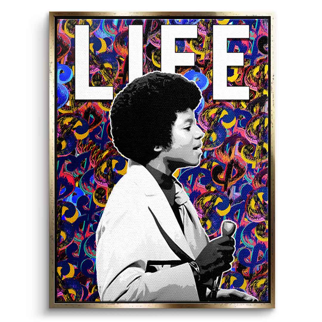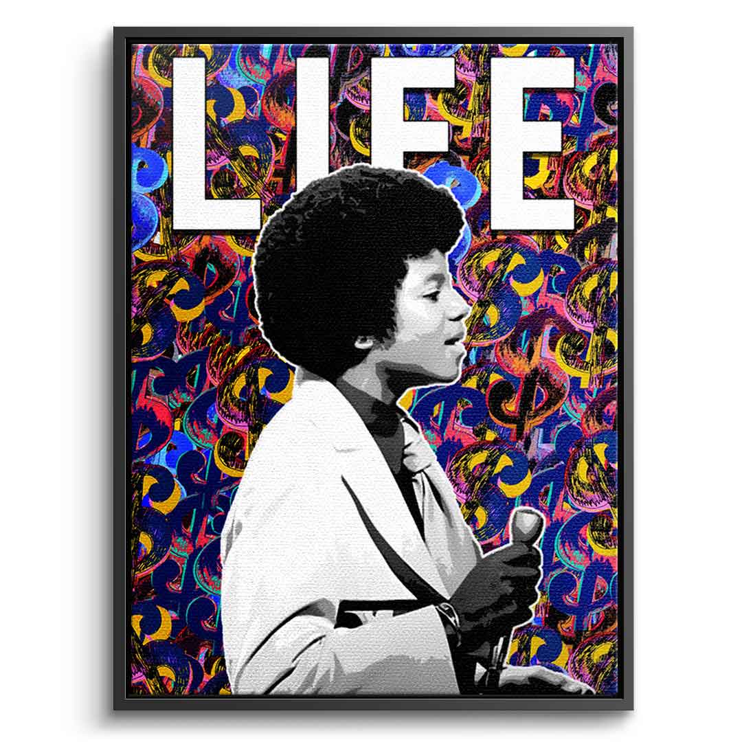 DOTCOMCANVAS® Premium Canvas Print with background featuring a dollar motif and lettering "LIFE".
