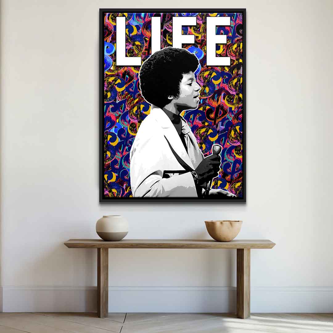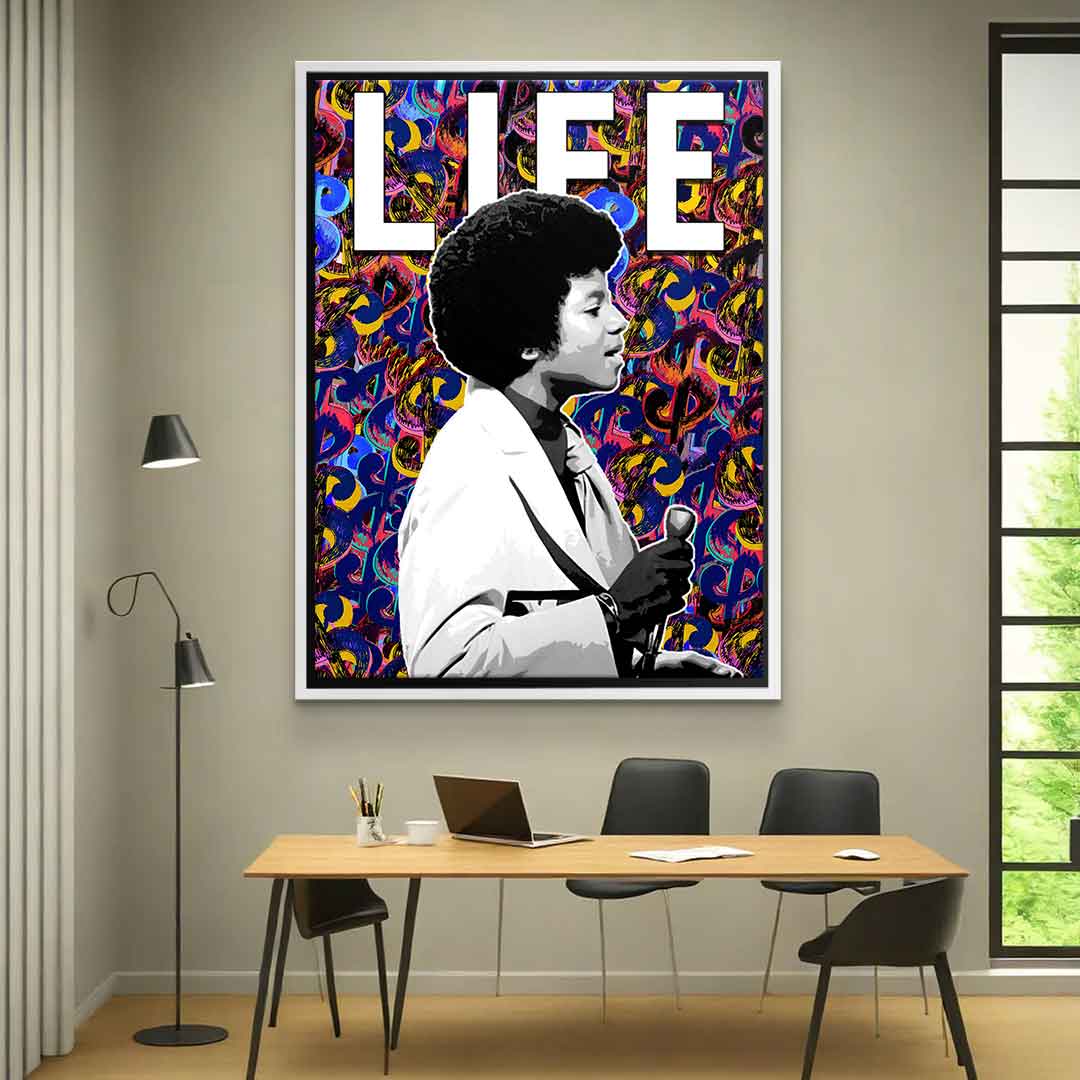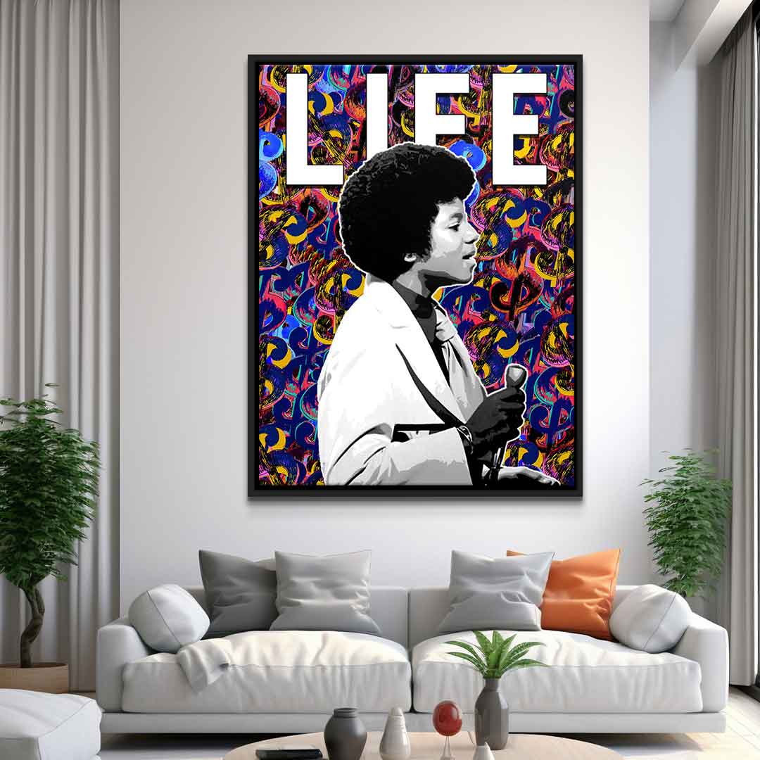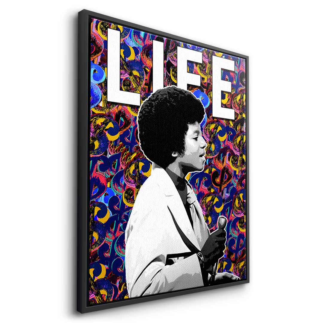 DOTCOMCANVAS® Premium Canvas Print with background featuring a dollar motif and lettering "LIFE".