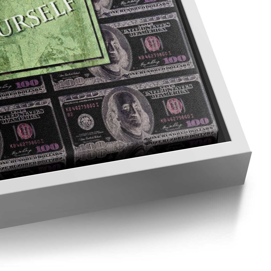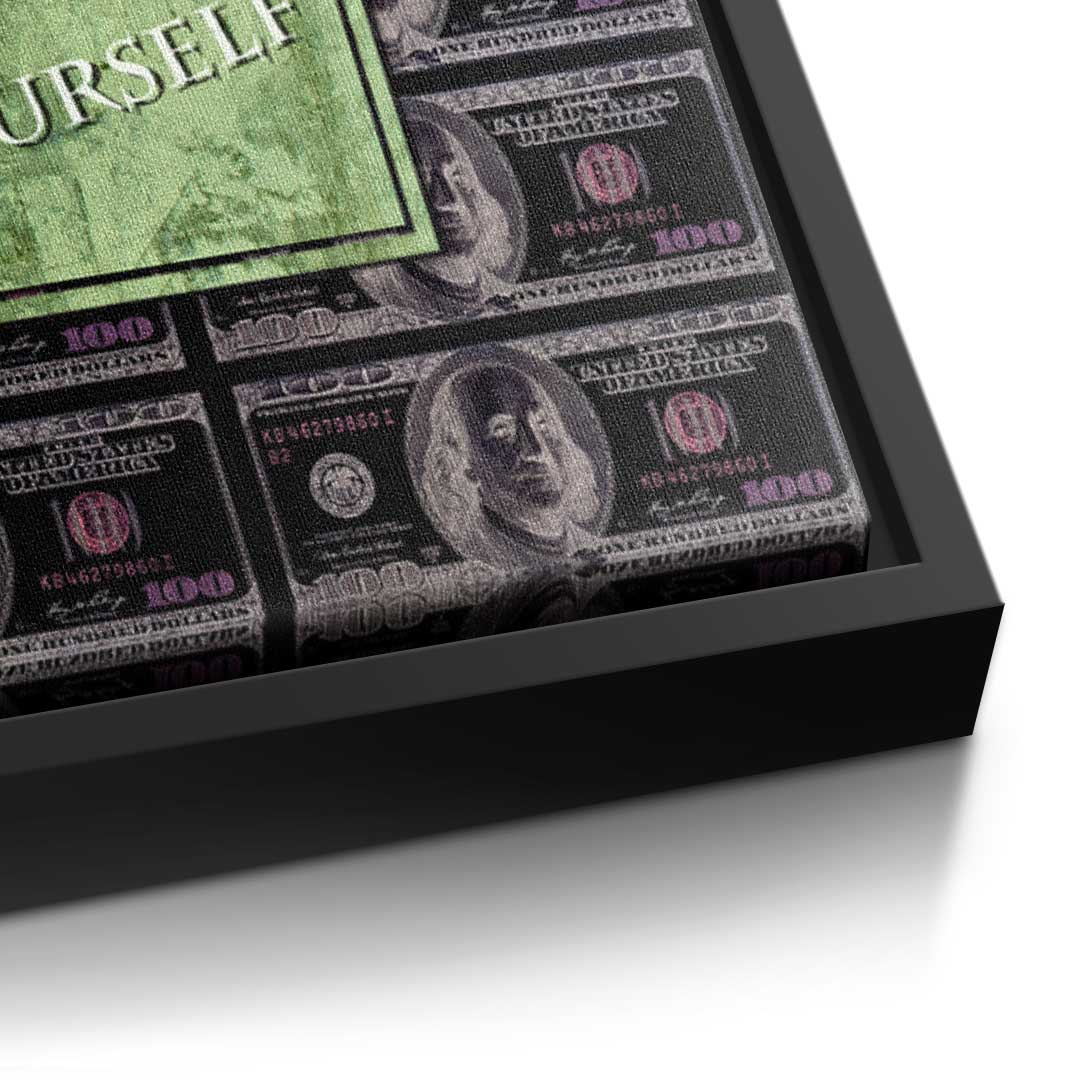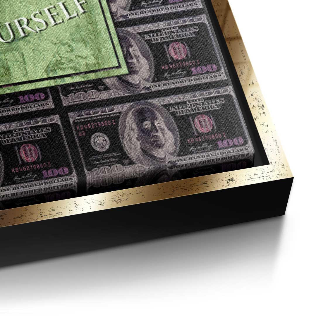 DOTCOMCANVAS® Premium Canvas Print with Motivational Quote and Dollar Bills in Green and Black.