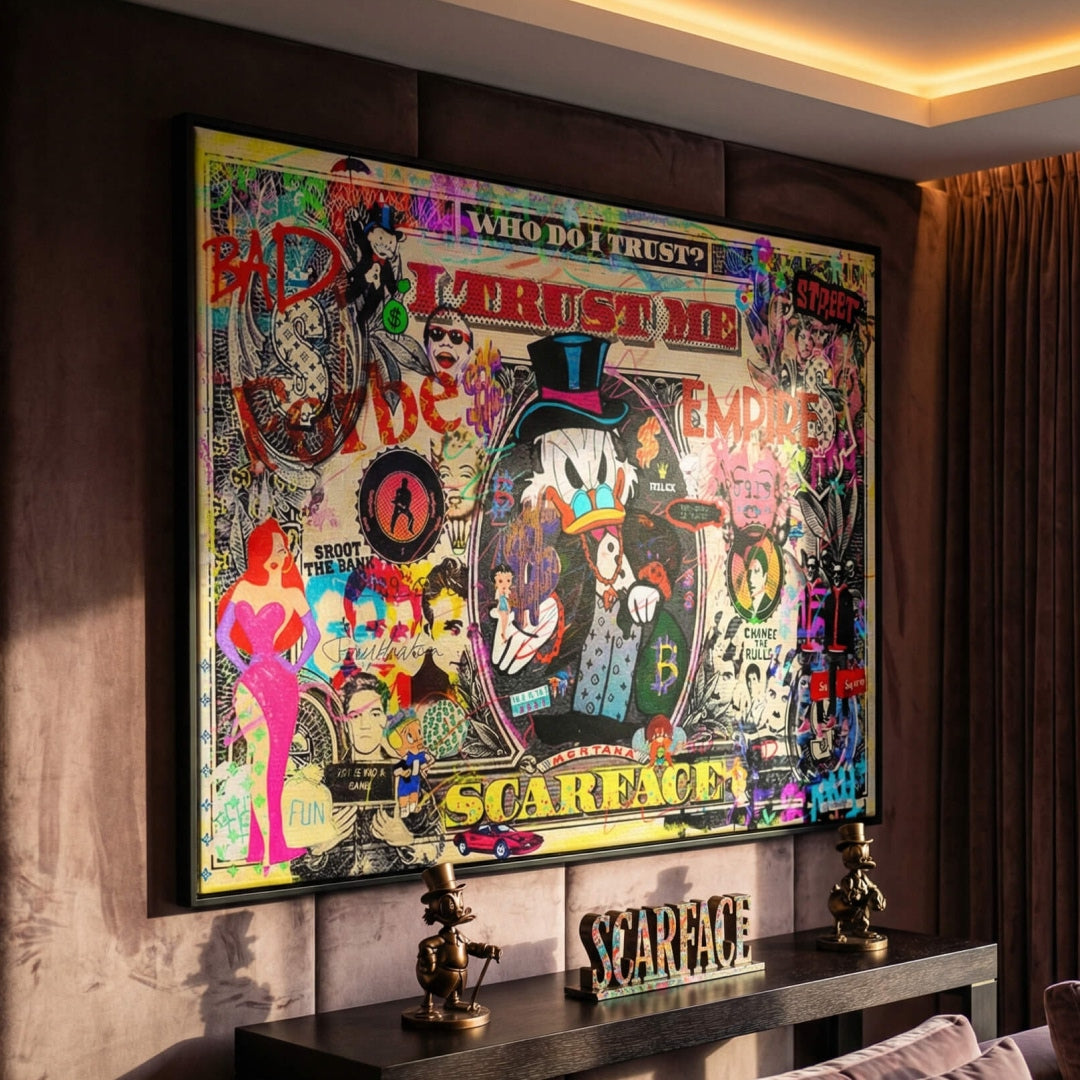 DOTCOMCANVAS® Premium Canvas Print with I TRUST ME motif in Pop Art style.