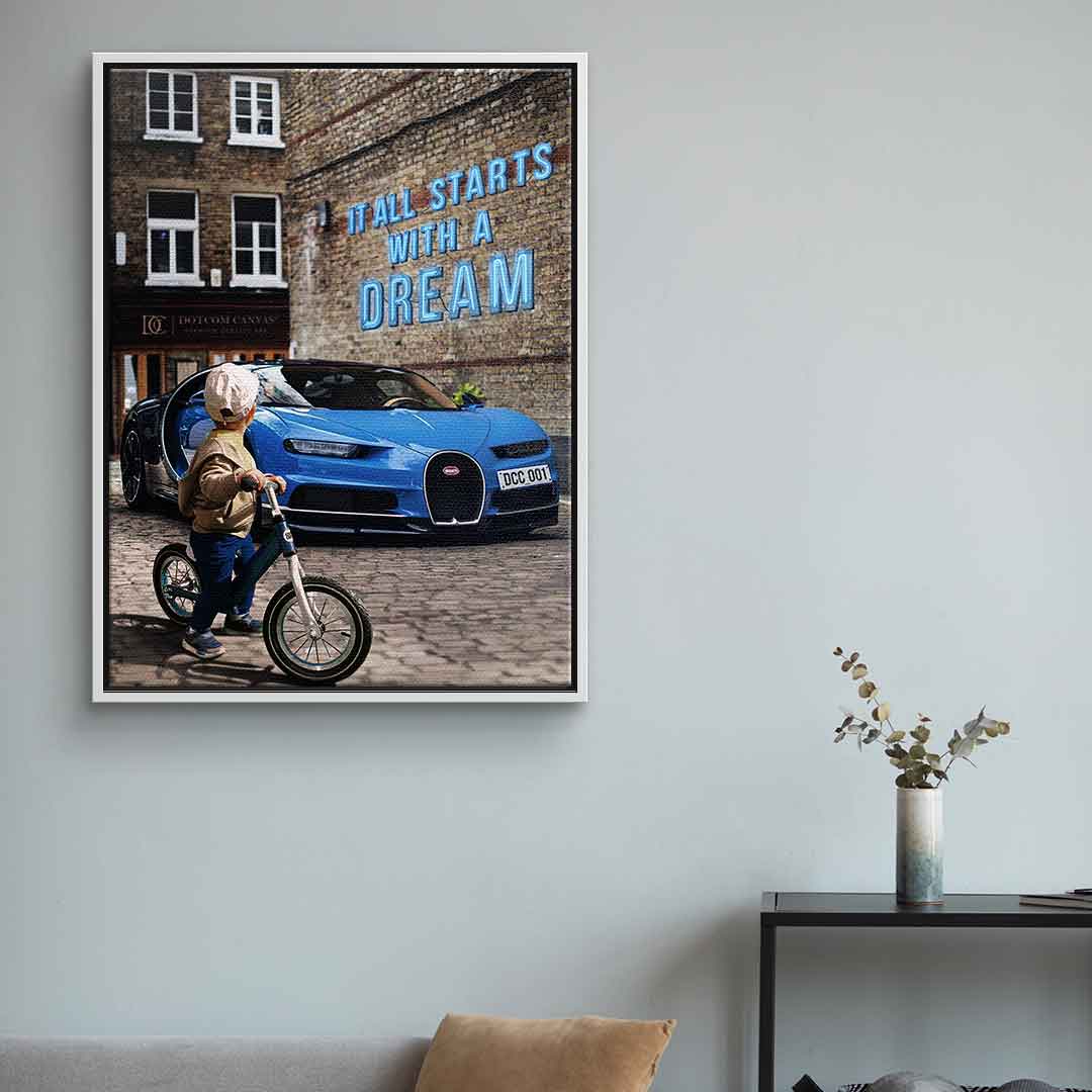 DOTCOMCANVAS® Premium Canvas Print with "It all starts with a dream 2.0 " motif.