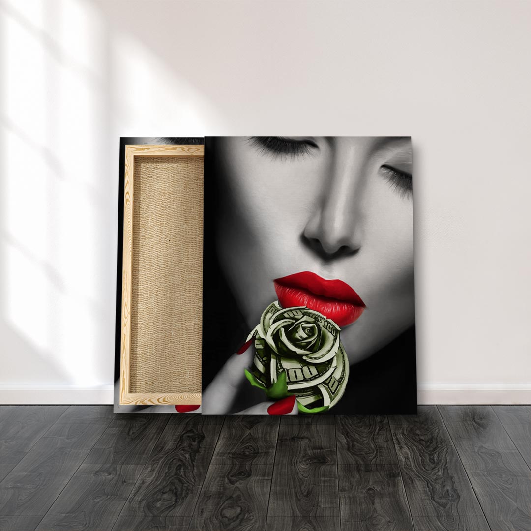 Provocative wall mural with sexy woman & money by DOTCOMCANVAS®