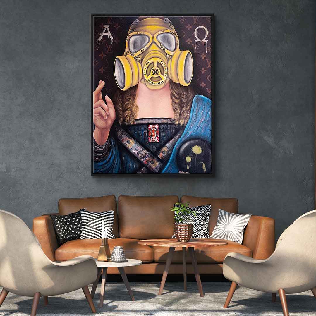 DOTCOMCANVAS® Premium Canvas Print featuring Jesus with a breathing mask - Motif.