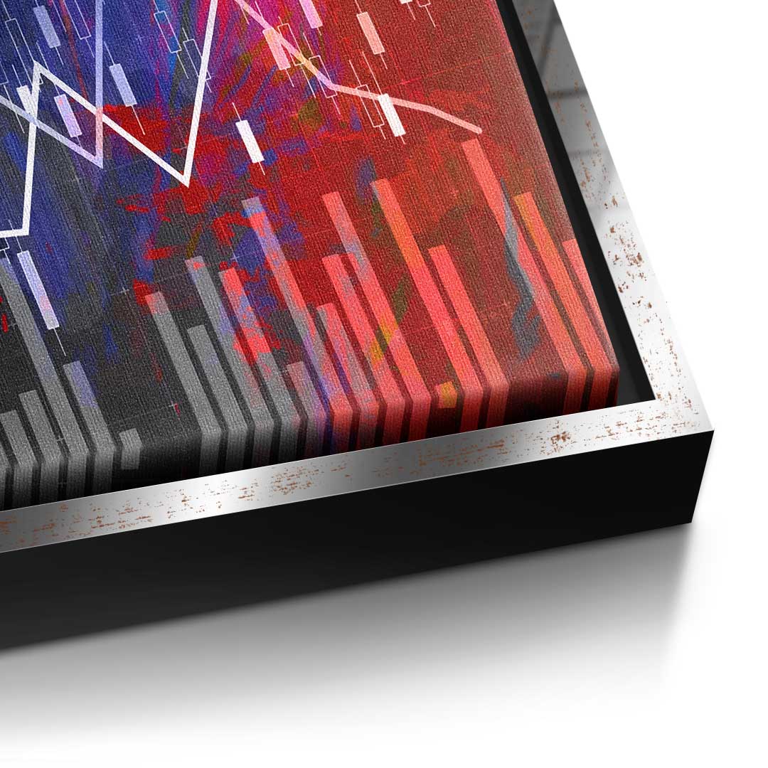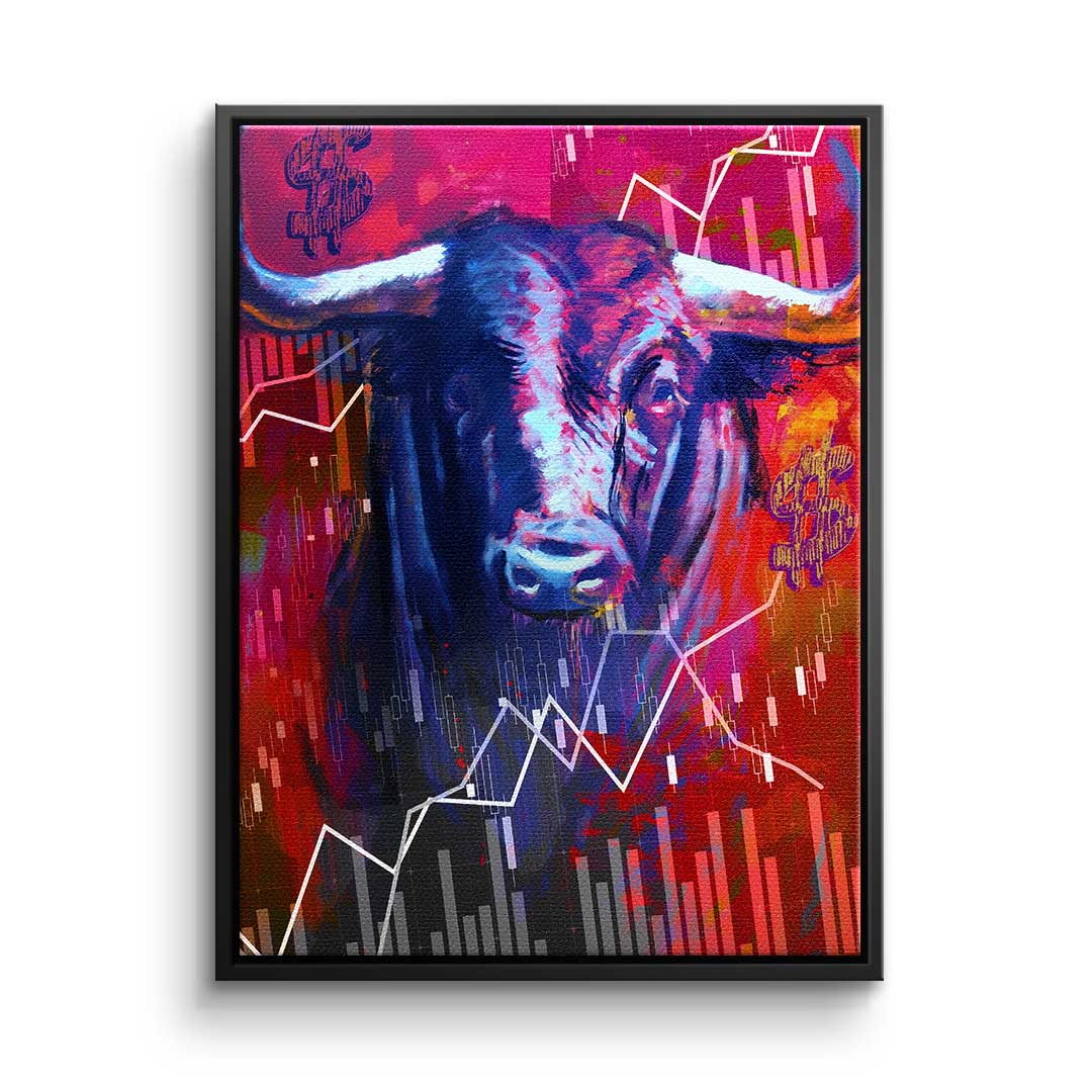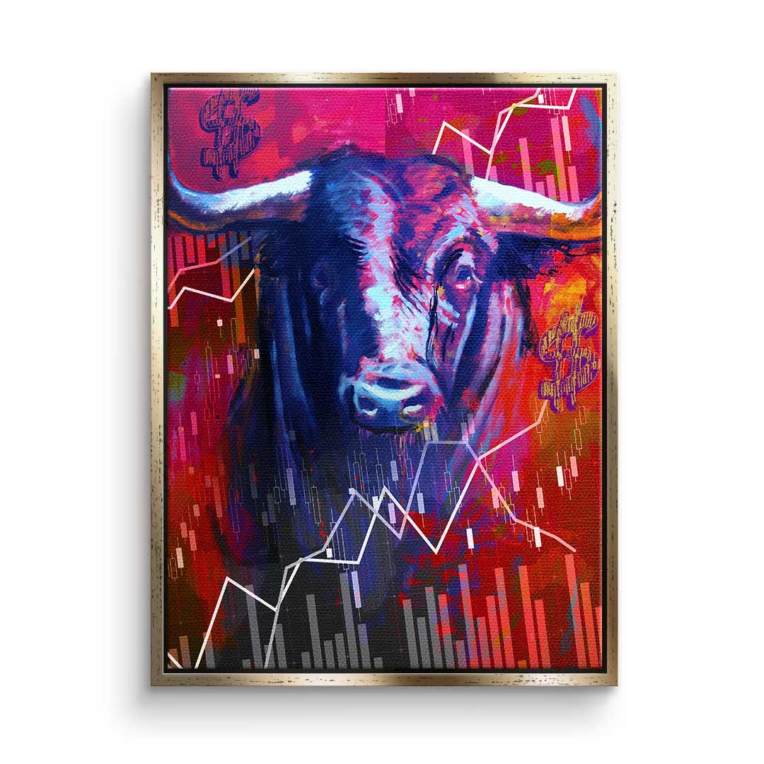 DOTCOM CANVAS® Premium canvas print in Pop Art style with graphs and bulls in red and blue.