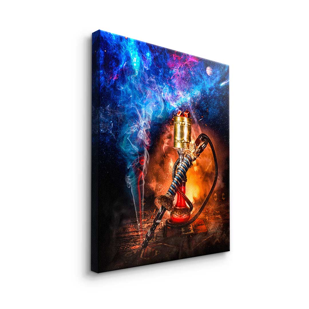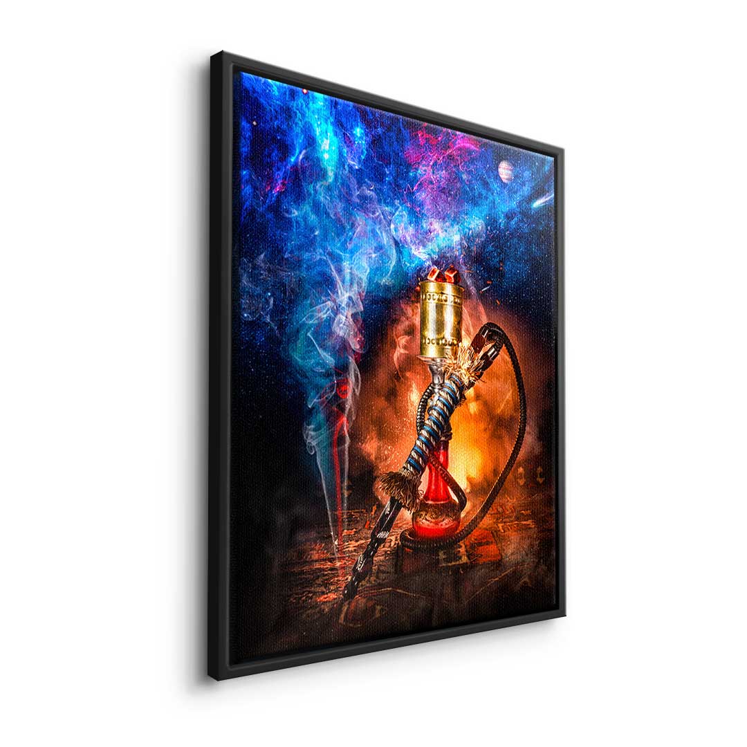 DOTCOMCANVAS® Premium canvas print in Pop Art style with a galactic shisha motif in orange, pink, blue and black.