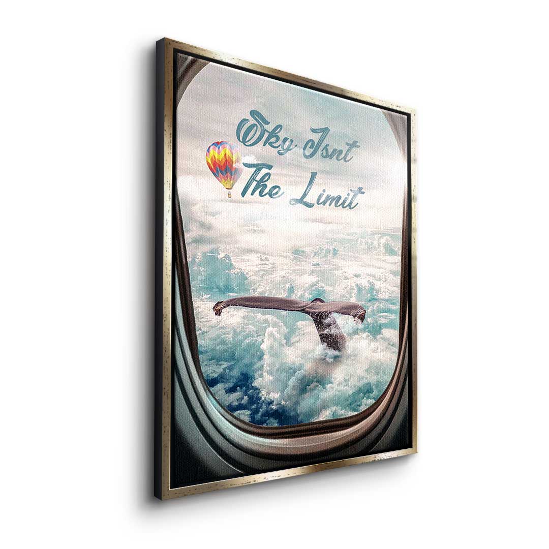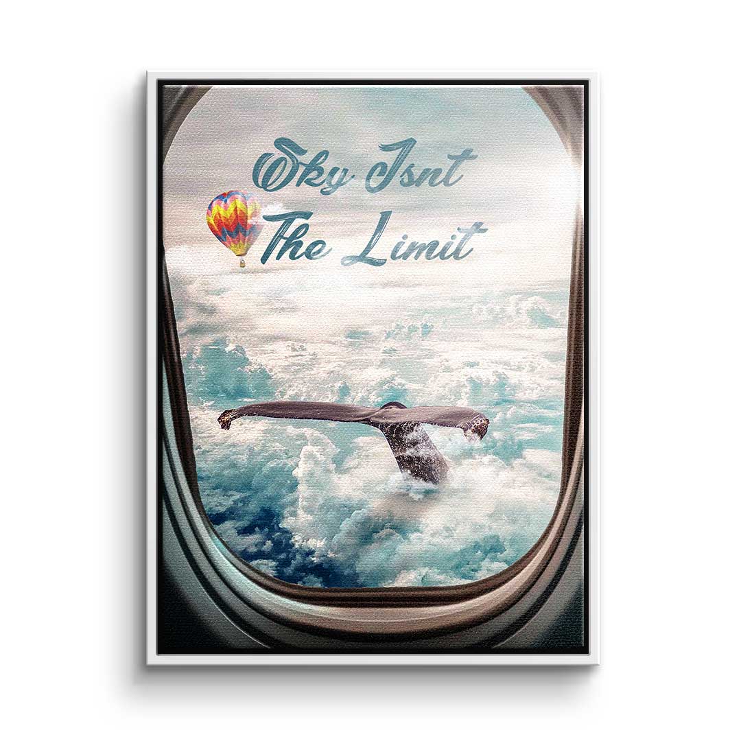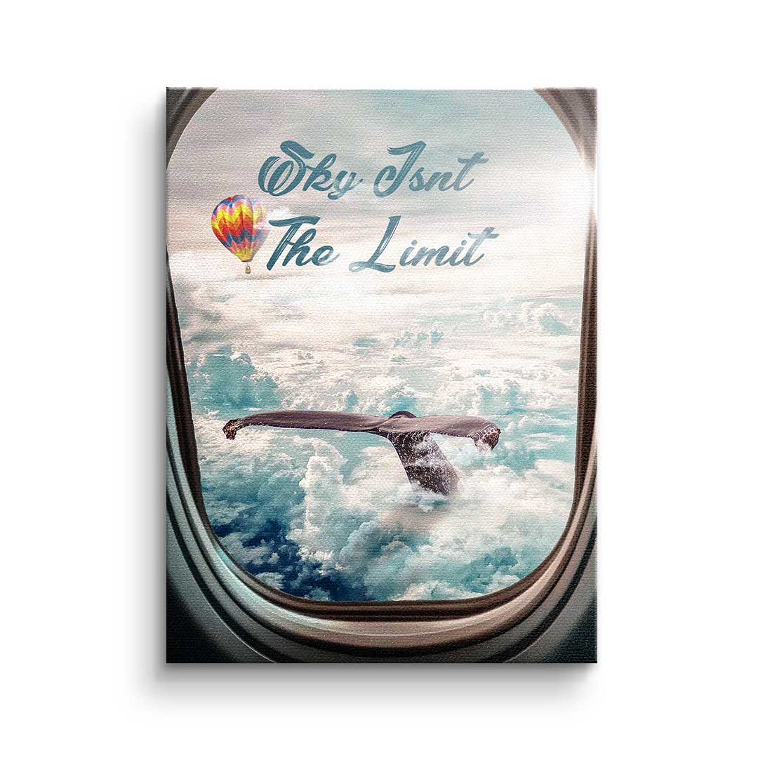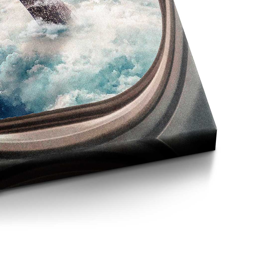 DOTCOMCANVAS® Premium canvas print with motivational quote and cloud motif in blue and white.