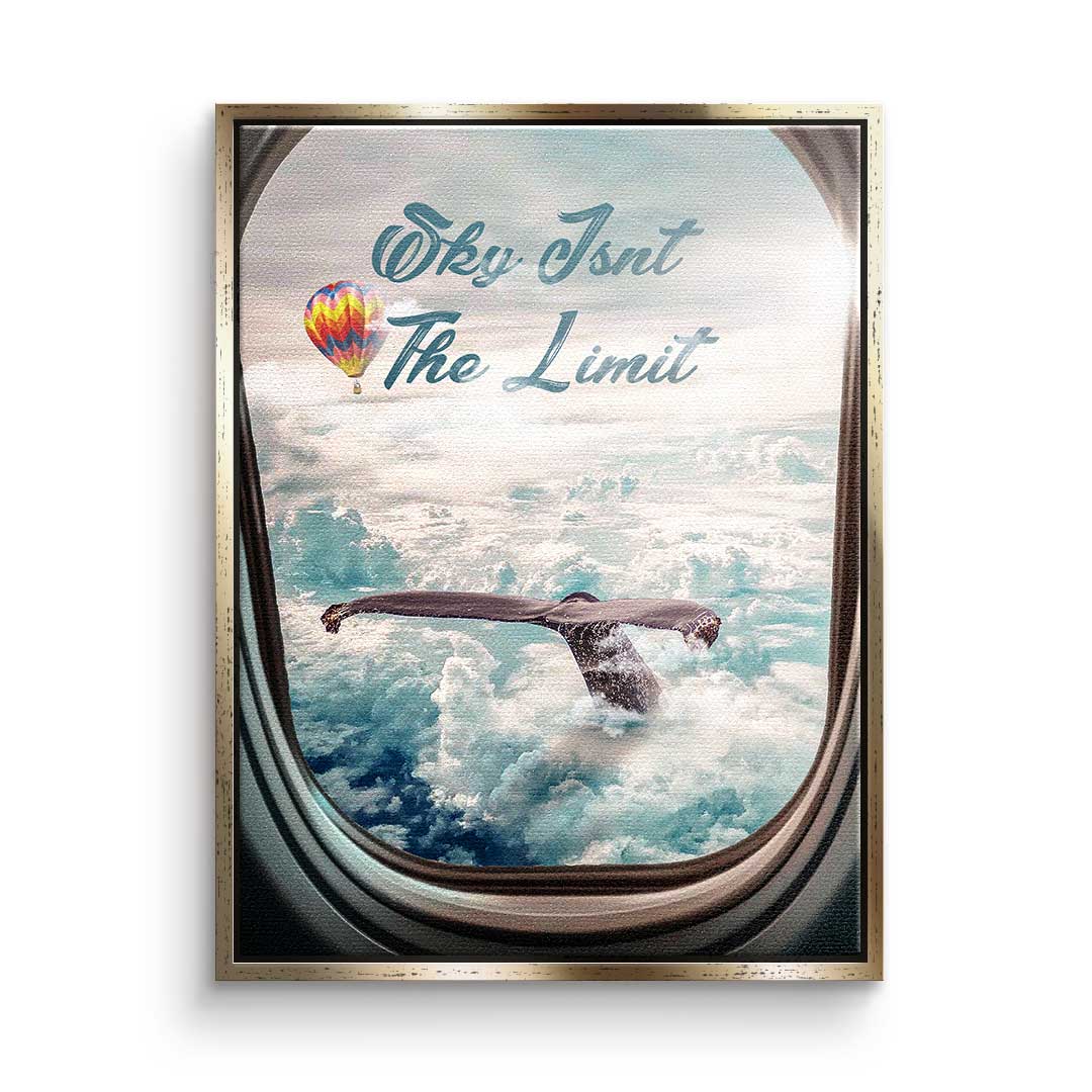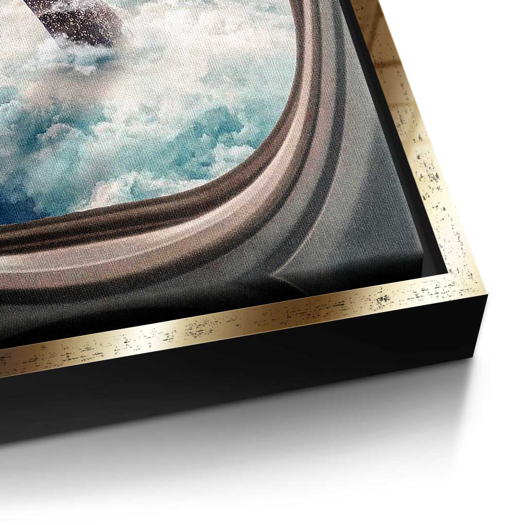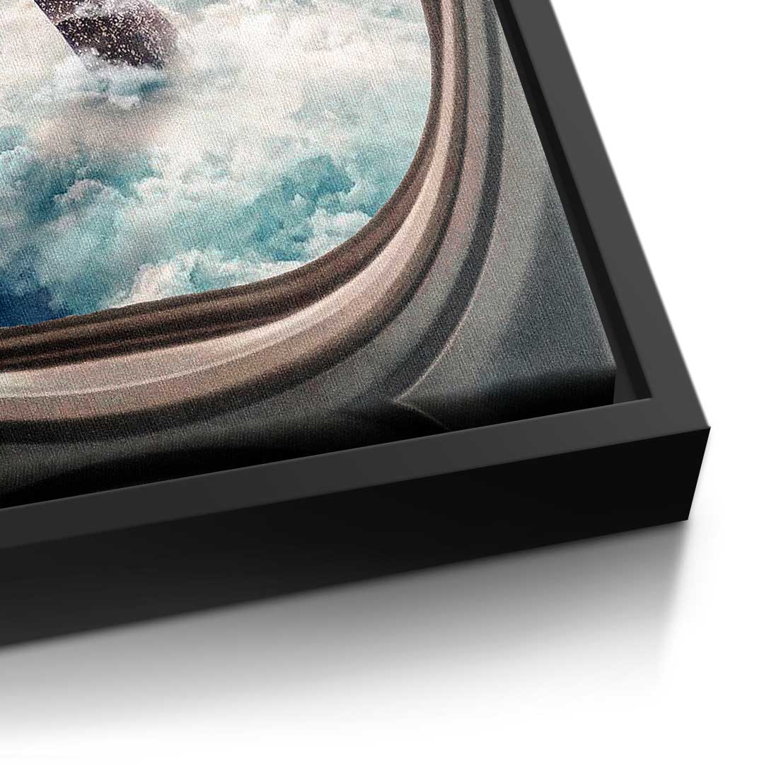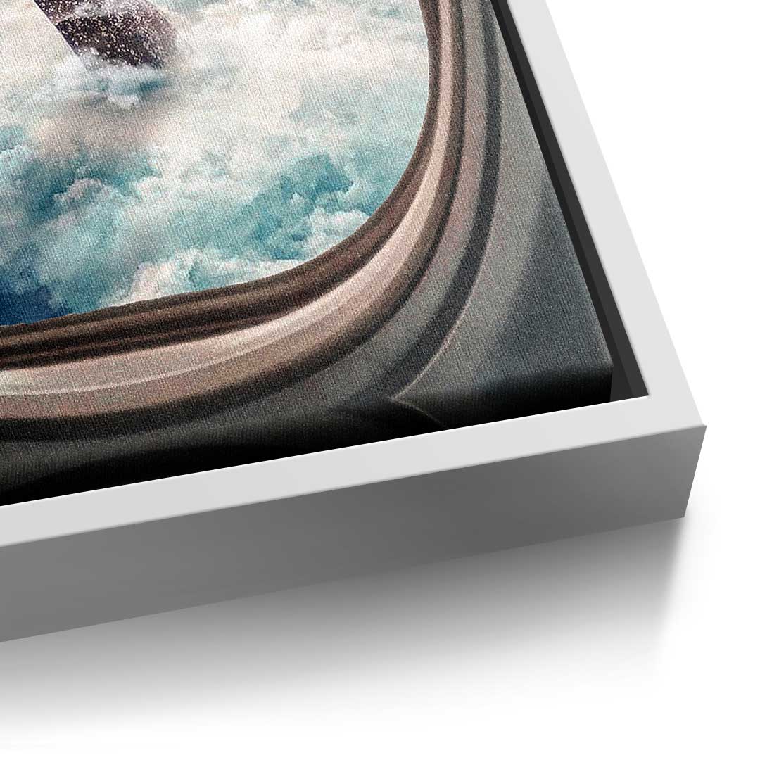 DOTCOMCANVAS® Premium canvas print with motivational quote and cloud motif in blue and white.