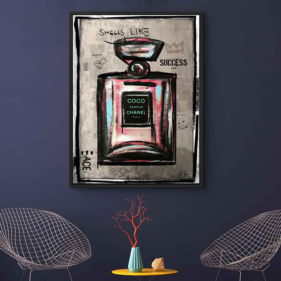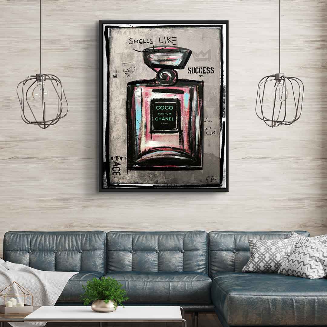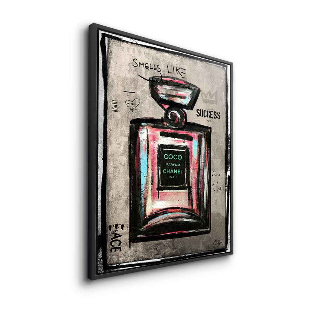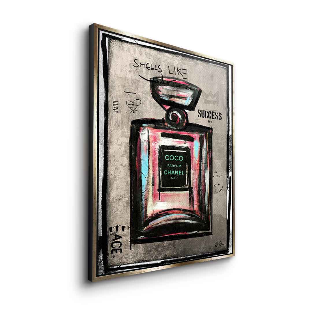 DOTCOMCANVAS® Premium Canvas Print with Coco Chanel Perfume Motif.