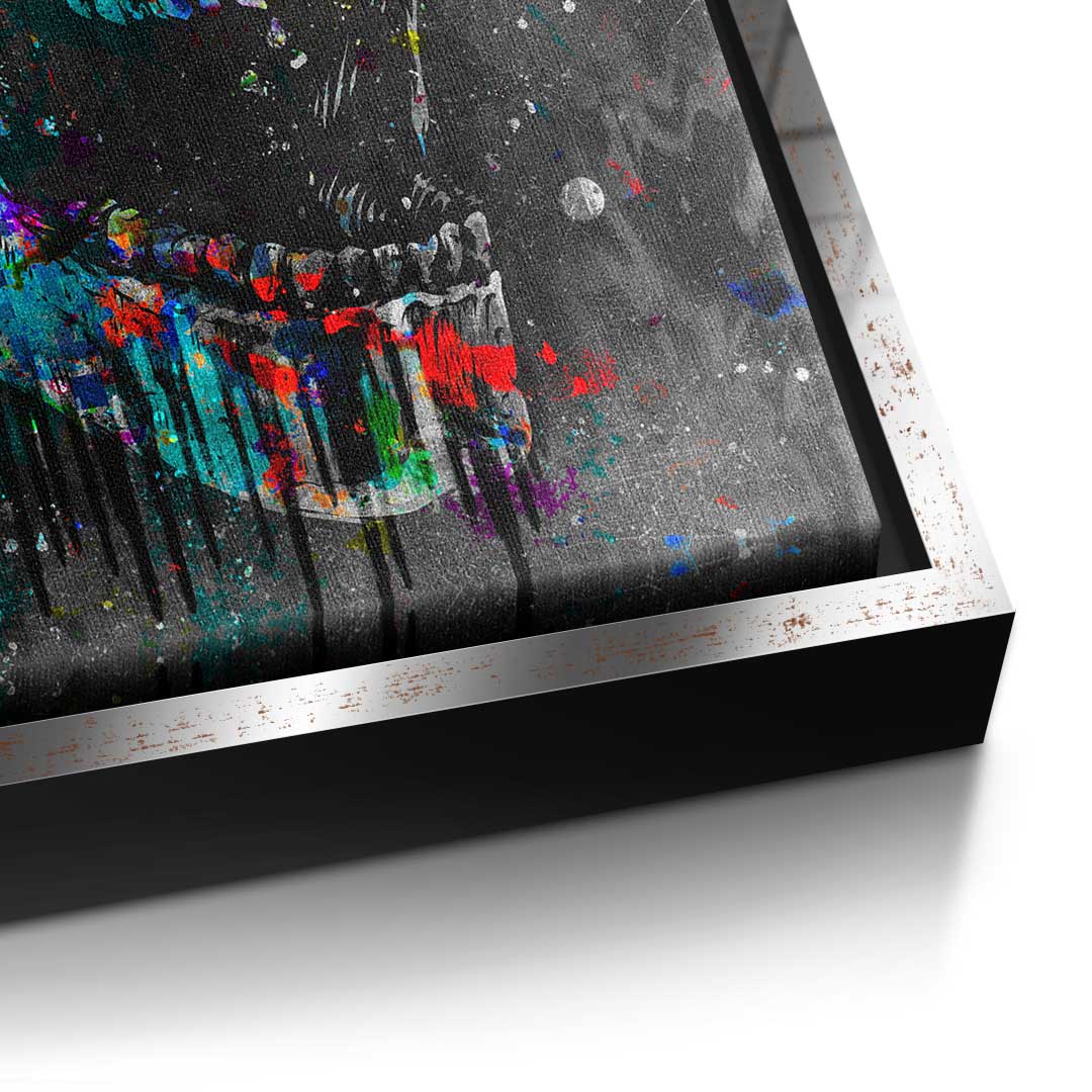 DOTCOMCANVAS® Premium canvas print in Pop Art style with colorful skull and motivational quote.