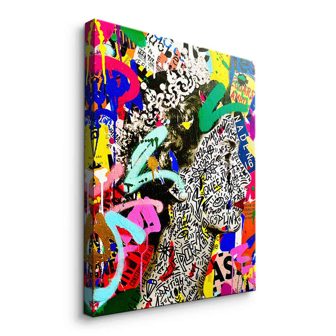 DOTCOMCANVAS® Premium Canvas Print featuring Queen Elizabeth II in Pop Art style.