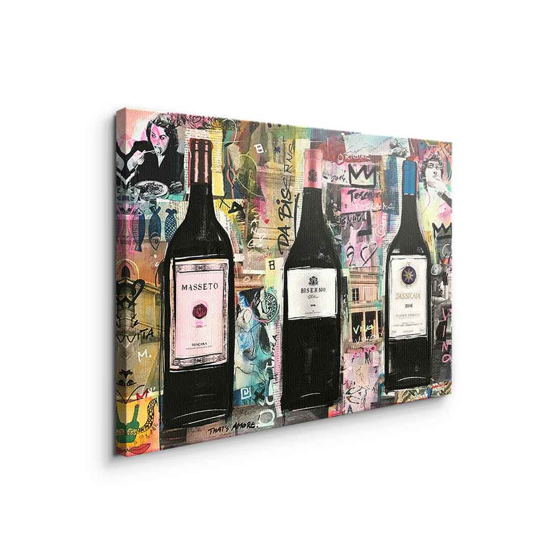 DOTCOMCANVAS® Premium canvas print featuring the 3 wine varieties Masetto, Biserno and Sassicaia as a motif.