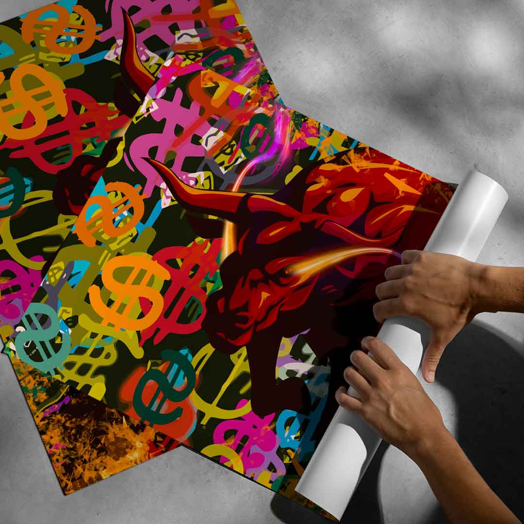 DOTCOMCANVAS® Premium Poster with Comic Bull motif.