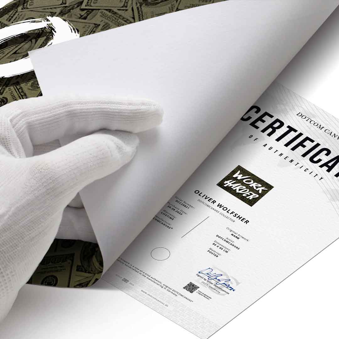 DOTCOMCANVAS® premium poster with Work Harder x Money motif.