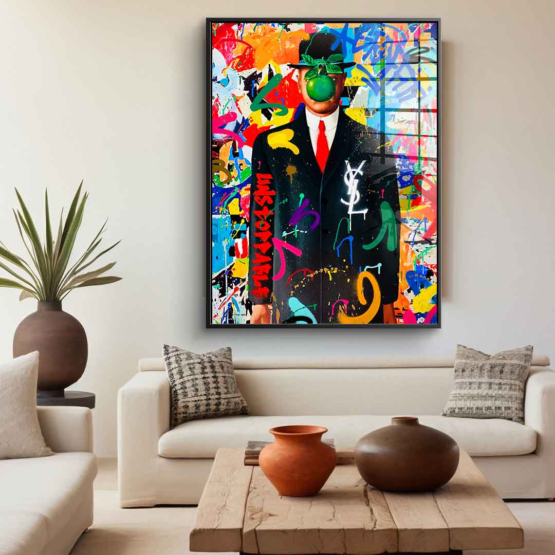 DOTCOMCANVAS® Premium Acrylic Glass Print with Graffiti Magritte Motif.