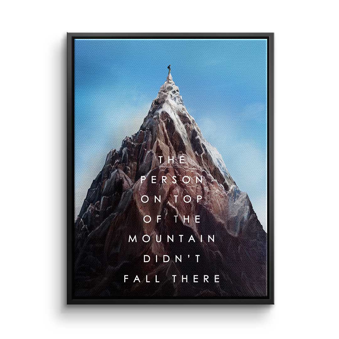 DOTCOMCANVAS® Premium canvas print with mountain motif and motivational quote in blue, black and white.