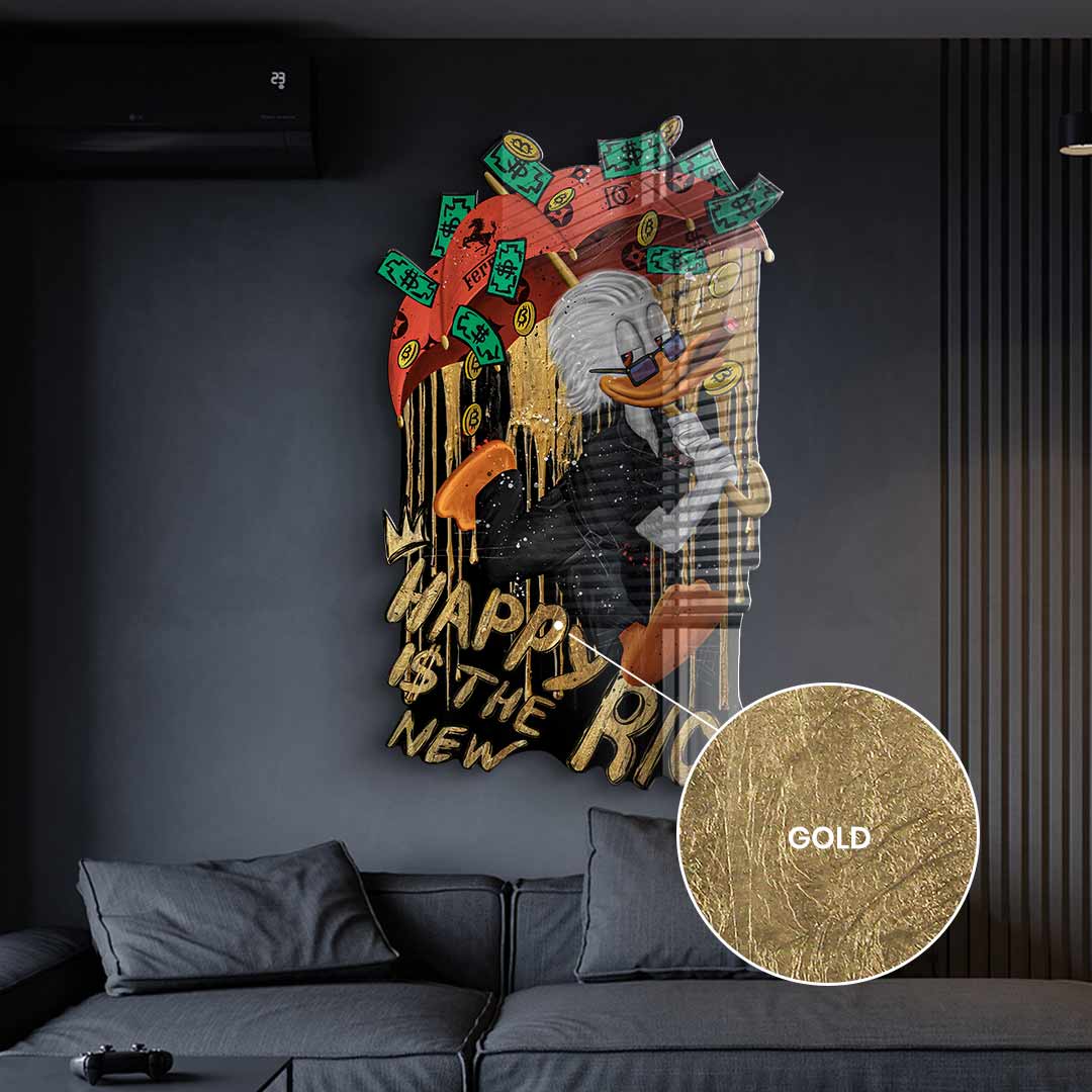 Wall sculpture Happy is the new Rich - gold leaf