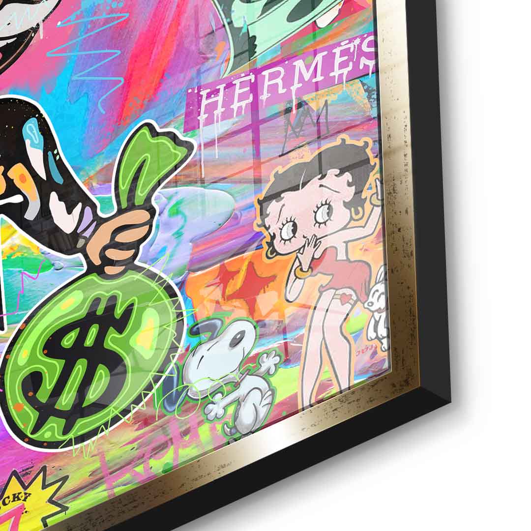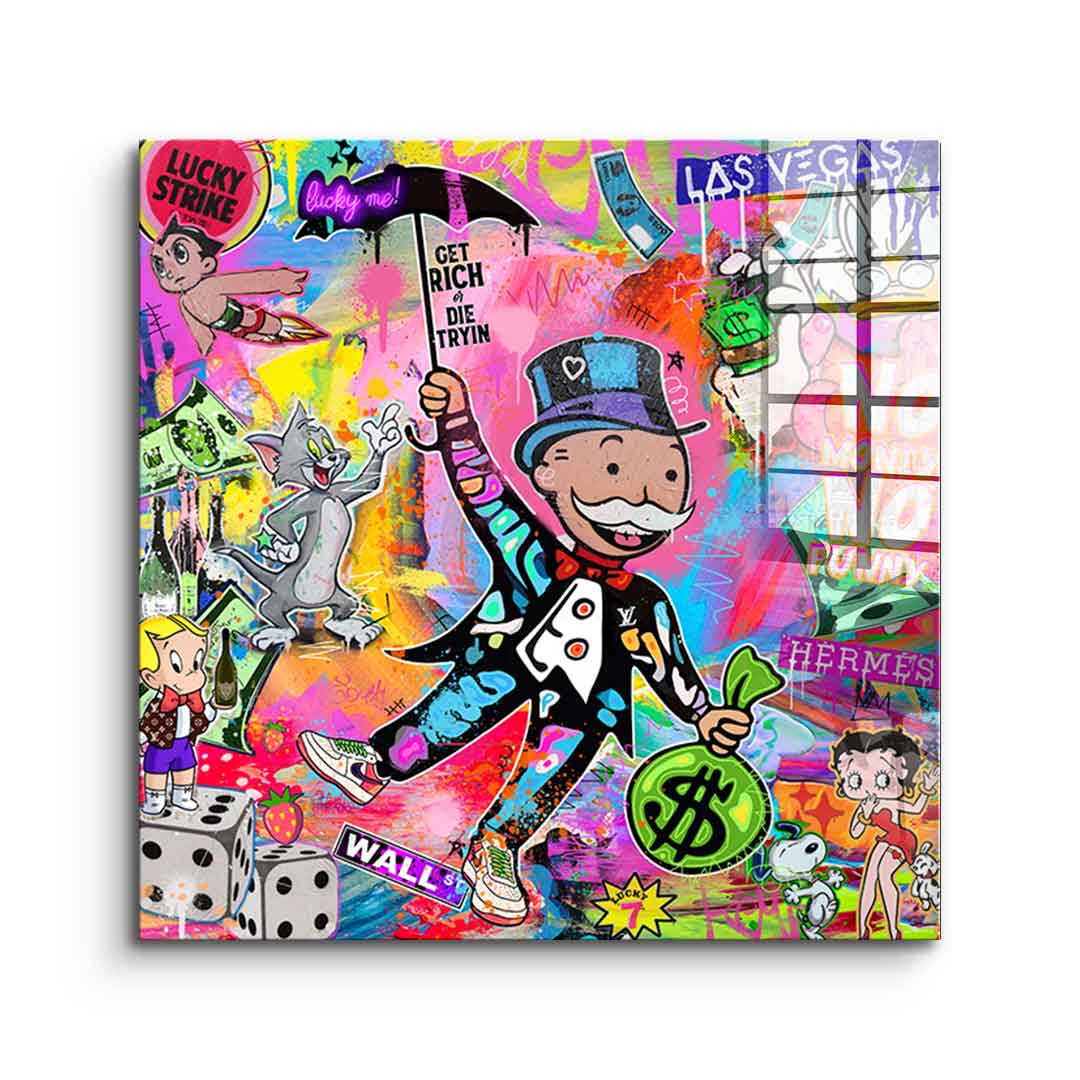 DOTCOMCANVAS® Premium Acrylglasbild mit Mr Monopoly Pop Art Motiv.