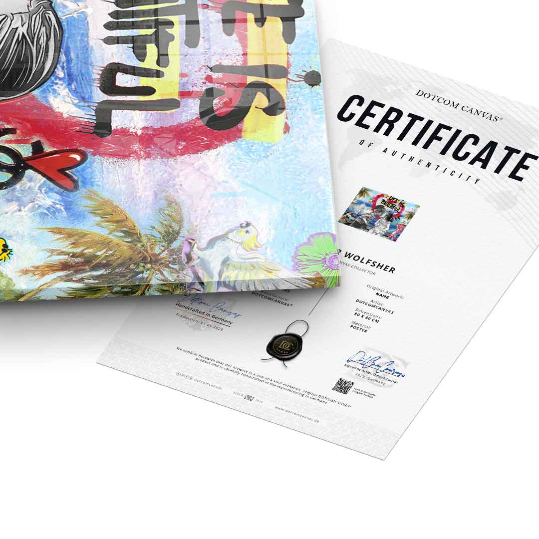 DOTCOMCANVAS® Premium Acrylglasbild mit Life Is Beautiful Motiv.