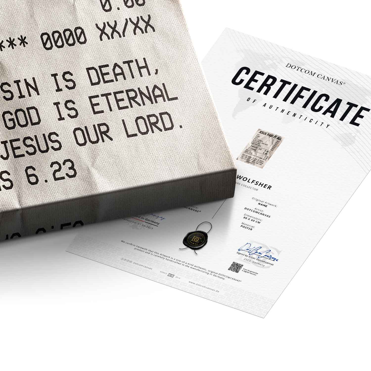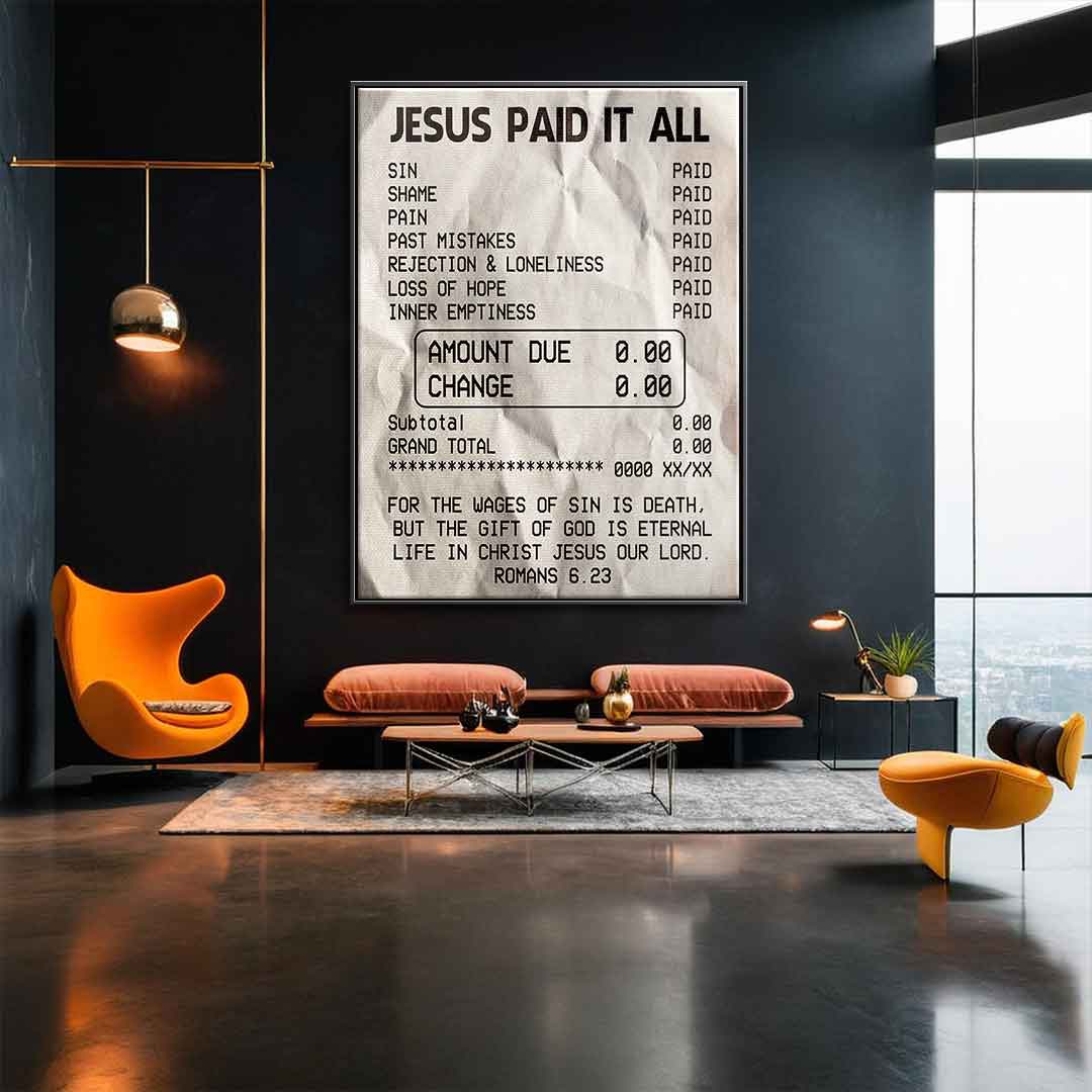 DOTCOMCANVAS® Premium Leinwandbild mit Jesus Paid it All Motiv.