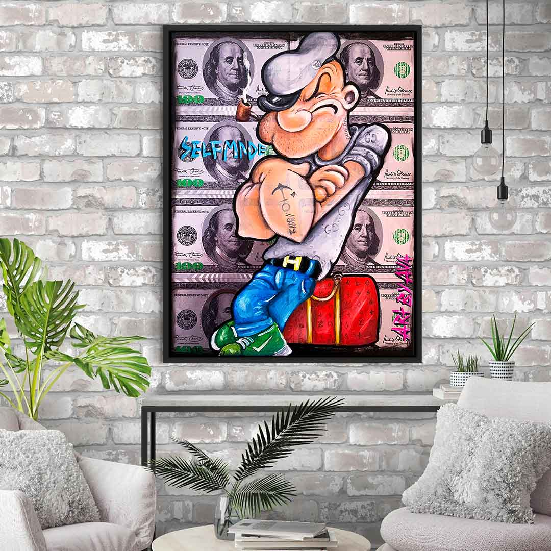 DOTCOMCANVAS® Premium Leinwandbild mit Popeye Motiv im Comic Stil.