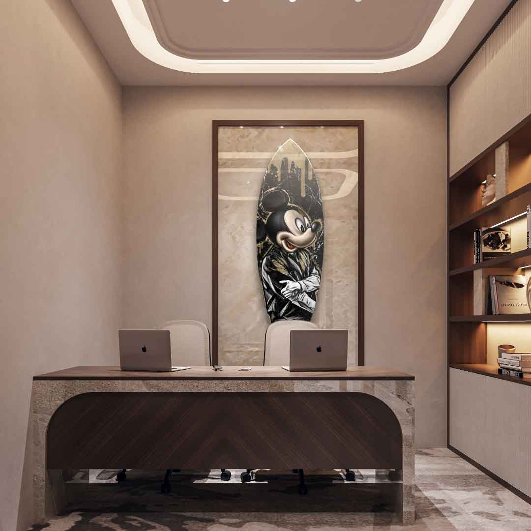 DOTCOMCANVAS® Premium Surfboard Blattgoldbild mit Gangster King Motiv.